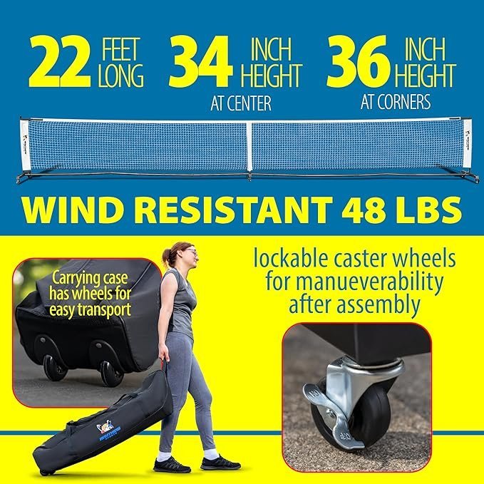 Perfect for pickleball players of all skill levels, the Deluxe Heavy Duty Pickleball Net with Wheels 2.0 combines strength, portability, and ease of use for an unparalleled playing experience.