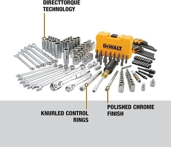 The DEWALT Mechanics Tools Kit is organized in a sturdy case for convenient portability and easy access to your tools. Whether you’re a professional mechanic or an enthusiast, this all-in-one toolset makes sure you have the right tools for the job, every time.