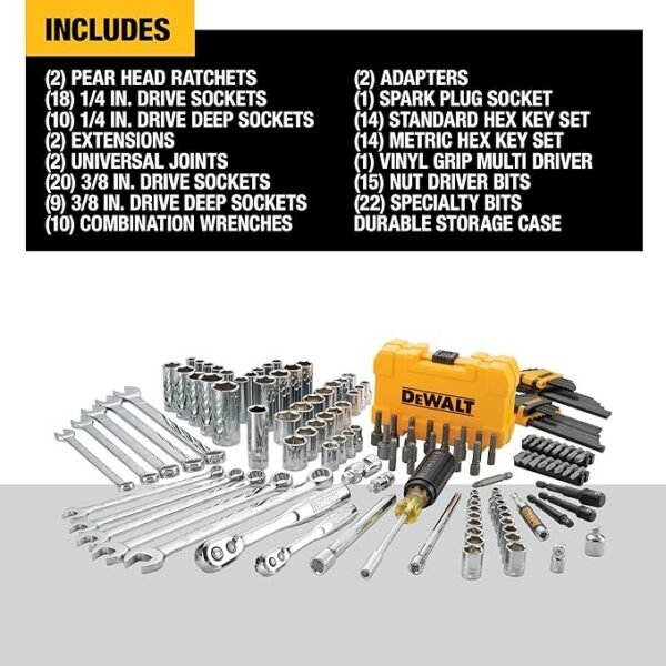DEWALT Mechanics Tools Kit and Socket Set, 142-Piece, 1/4 & 3/8″ Drive, MM/SAE (DWMT73802)