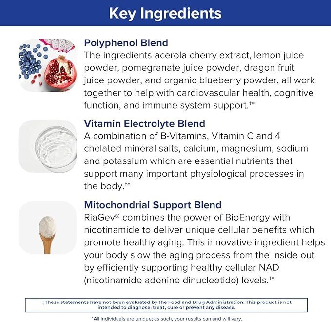 It promotes mitochondrial function by supporting the energy-producing powerhouses of your cells and boosts ATP production for sustained energy throughout the day. The inclusion of powerful polyphenols helps fight oxidative stress and protects your cells, contributing to healthy aging and a vibrant, active lifestyle.