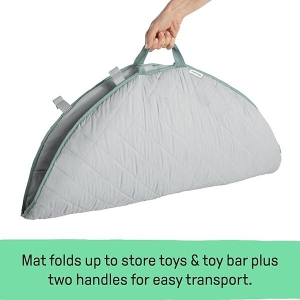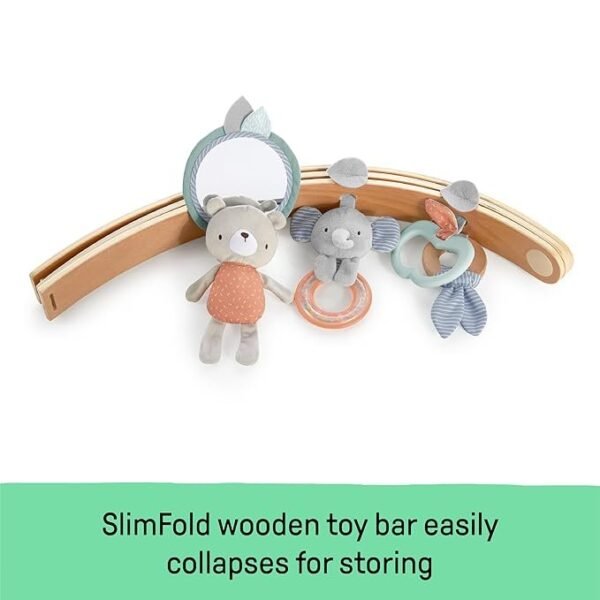 With a patent-pending design, the SlimFold wooden toy bar folds easily and quickly. The mat features 2 built-in handles to allow parents to fold and hold all elements for easy storage or to take baby’s favorite spot on the go.