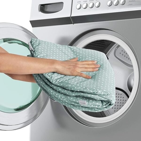 Assembled dimensions: 19.3 x 32.3 x 32.3 inches. The duvet and mat are machine washable, and the toys and bar wipe clean. This versatile activity gym and play mat is perfect for growing babies and adds a touch of comfort, style, and functionality to any nursery.