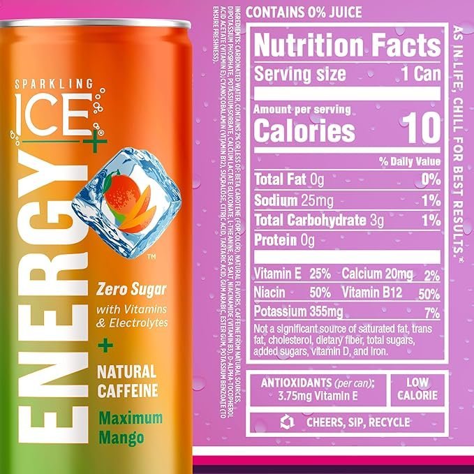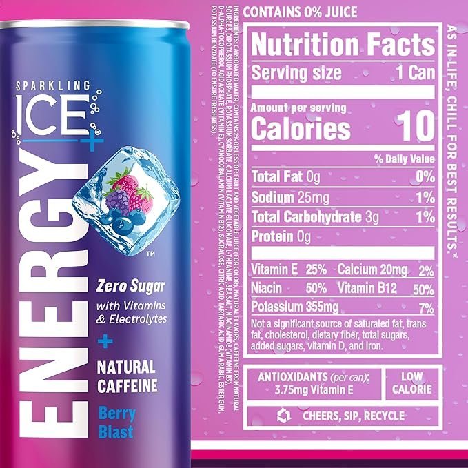Elevate your energy levels with the Sparkling Ice +Energy Variety 12-Pack, featuring three invigorating flavors: Berry Blast, Maximum Mango, and Power Punch. Each 12 fl oz can is crafted to provide a refreshing, zero-sugar beverage infused with essential vitamins, antioxidants, and 160mg of naturally sourced caffeine. This combination supports hydration and delivers a sustained energy boost without the added sugars found in traditional energy drinks. The variety pack offers a convenient selection, allowing you to enjoy a different flavor with each can. Perfect for on-the-go lifestyles, workouts, or as a midday pick-me-up, Sparkling Ice +Energy ensures you stay refreshed and energized throughout your day.