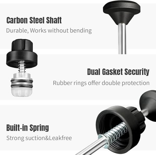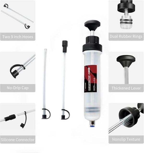 LEAK-PROOF DESIGN – Equipped with a locking button for secure tube use, this manual fluid extractor and injector boasts a dual rubber ring design to ensure an airtight seal. The precision-threaded end of the tube eliminates any chances of leakage.