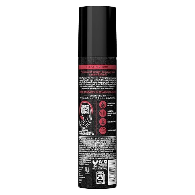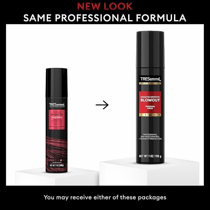 TRESemmé Keratin Smooth Anti-Frizz Finishing Spray is your ultimate solution for achieving a sleek, polished look with long-lasting frizz control. Infused with keratin, this weightless finishing spray offers flexible hold while maintaining the natural movement of your hair. It helps smooth strands, tame flyaways, and protect your hairstyle from humidity, giving you up to 72 hours of frizz control.